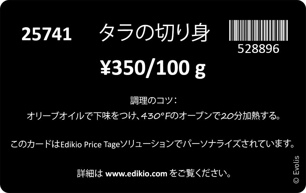 Edikioプライスタグはお肉屋さんのためのオールインワン印刷ソリューションです。各キットには以下が含まれています: