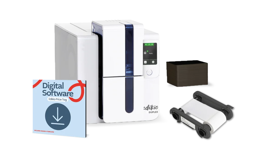 Edikio Duplex Price Tagは、両面印刷対応のPVCカードに価格ラベルを作成・印刷するオールインワンの高度なソリューションです。