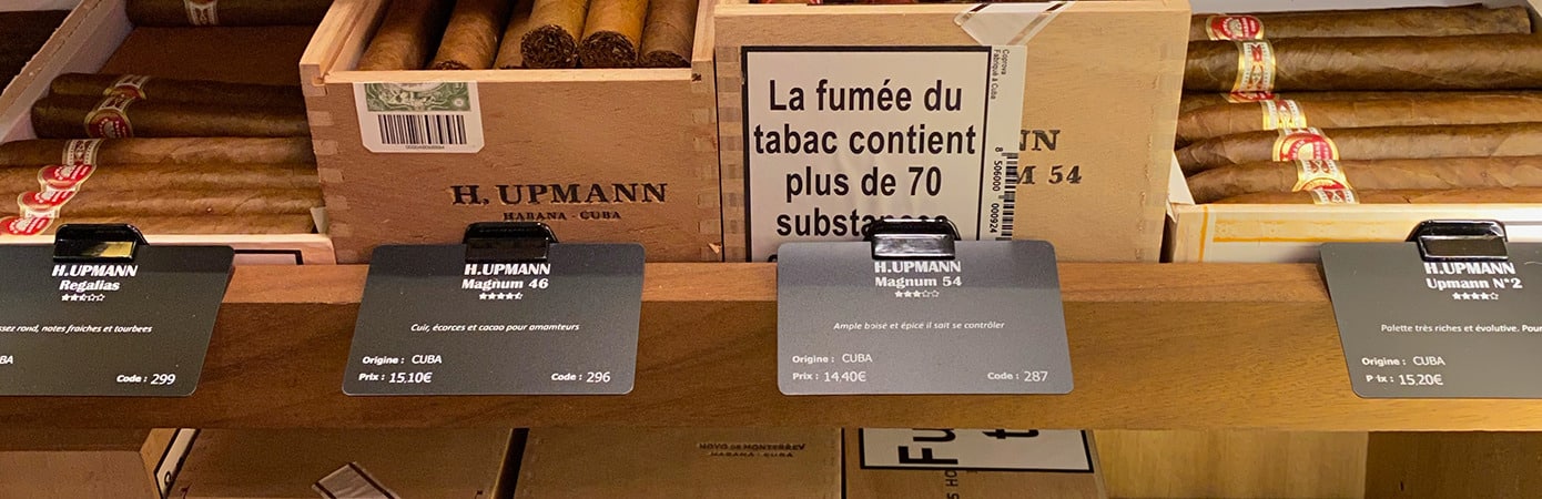 「Le Cigare et la Plume」店のシガーセラーに適した価格タグ